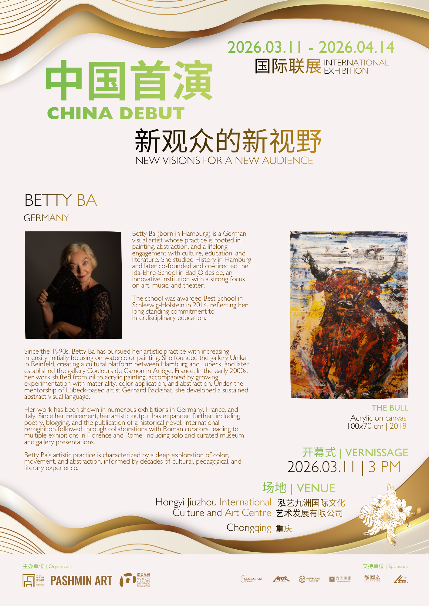 „Betty Ba ist ständig auf der Suche nach neuen Intuitionen und Ausdrucksmöglichkeiten und verinnerlicht die Verbindung zwischen Form und Farbe durch eine Sprache, die reich an Entwicklungen ist und sich für einen Dialog mit ihren Betrachtern öffnet, aufgrund ihres einzigartigen, energetischen und kraftvollen Stils, der vor allem mitreißend ist.“